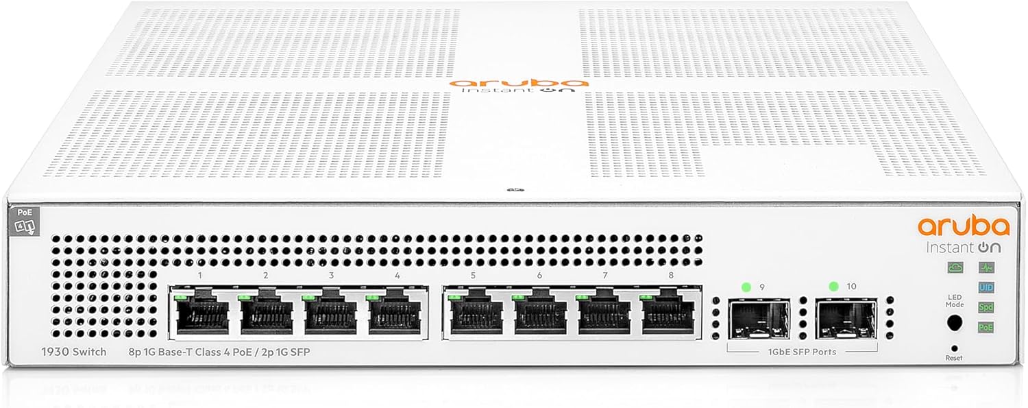 - The Instant On 1930 8G 2SFP PoE switch is a high-performance, smart-managed Layer 2+ gigabit Ethernet switch designed for small and medium businesses with fast set-up, easy management, and advanced features for high performance. Its built-in security protects your network from external threats by mitigating DDOS attacks and keeping unauthorized users off the network. Features 124W of Class4 PoE on 8 ports to power access points, cameras, IP phones and other IoT devices