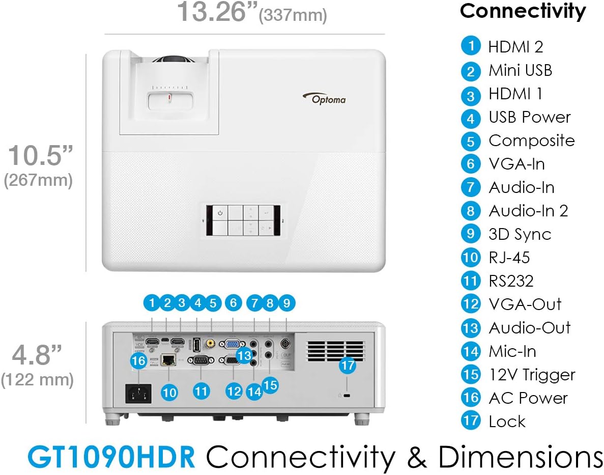 The Optoma GT1090HDRx is a premium home theater projector that delivers an immersive cinematic experience.