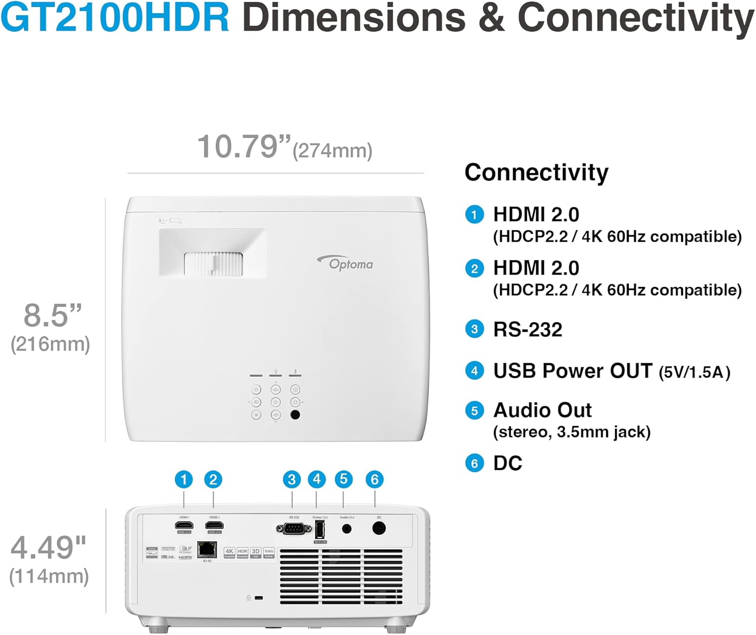 Experience next-level entertainment and gaming with the Optoma GT2100HDR Compact Short Throw Laser Projector. Designed for crisp, high-definition visuals, ultra-low latency gaming, and a durable lamp-free laser light source, this projector is perfect for any setup – day or night.
