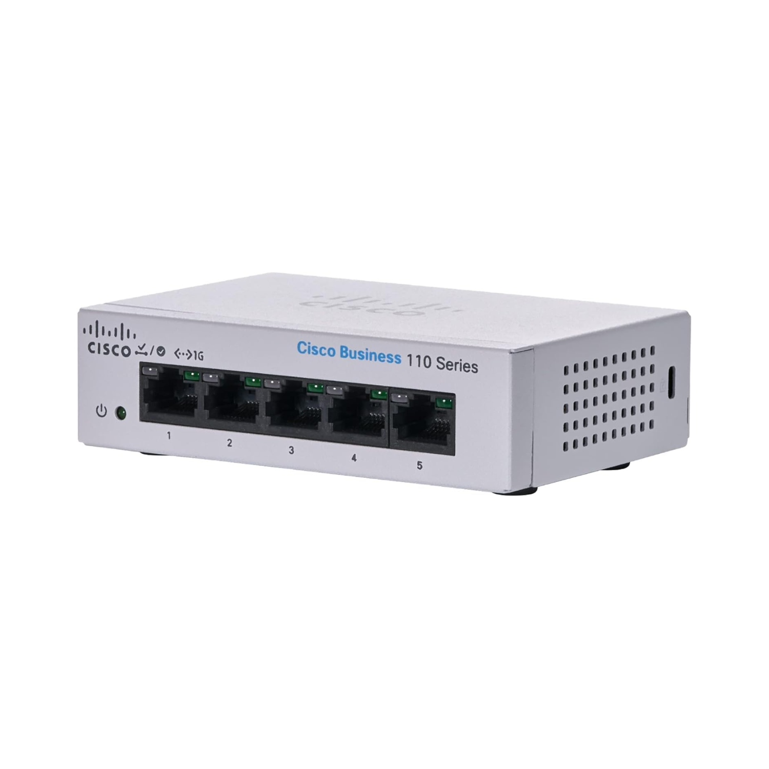 The Cisco Business CBS110-5T-D is an unmanaged 5-port Gigabit Ethernet switch designed for small businesses and home offices. With plug-and-play simplicity, this desktop switch provides high-speed network connectivity for essential devices, ensuring seamless and reliable performance. The CBS110-5T-D is built for energy efficiency, durability, and long-term operation, making it a perfect choice for businesses looking for cost-effective networking solutions.