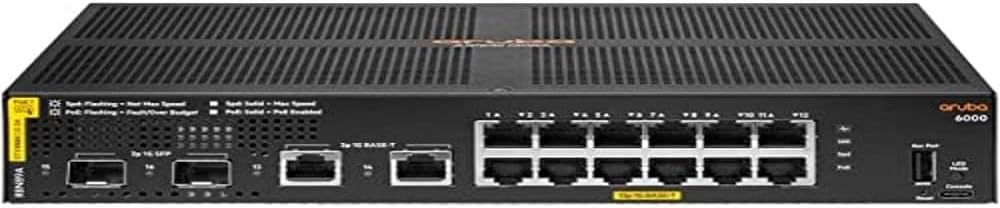 The Hewlett Packard Enterprise Aruba 6000 12G Class4 PoE 2G/2SFP 139W Managed L3 Gigabit Ethernet Switch is a high-performance, enterprise-grade network switch designed to deliver reliable and scalable connectivity. With its 12 Gigabit Ethernet ports, 2 SFP+ ports, and Class 4 PoE support, the 6000 switch can power and connect a variety of devices, including IP phones, wireless access points, and security cameras. It offers advanced features like VLANs, QoS, and security, making it suitable for a wide range of network applications. The 6000 switch is easy to manage and configure, with intuitive web-based and mobile app interfaces.