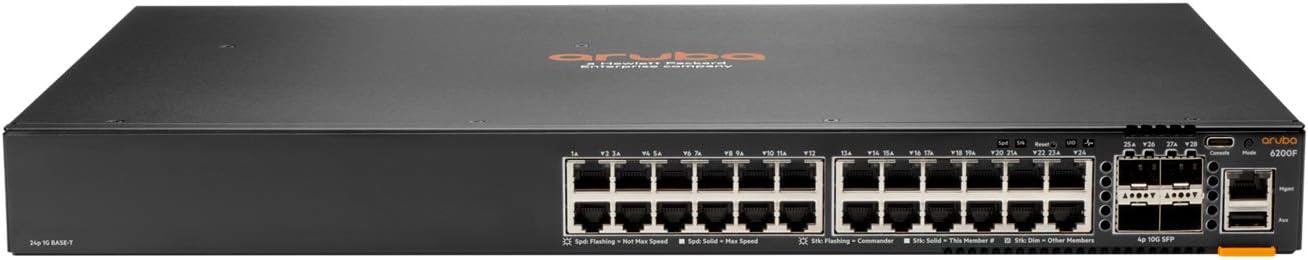 The HPE Aruba 6200F 24G CL4 4SFP+ 370W Switch is a high-performance, enterprise-class Layer 2+ Ethernet switch designed to deliver reliable and scalable network connectivity. It offers 24 Gigabit Ethernet ports with Class 4 PoE support, 4 SFP+ ports for fiber connectivity, and advanced features like VLANs, QoS, and security. The 6200F is easy to manage and configure, with intuitive web-based and mobile app interfaces. It's ideal for businesses of all sizes that require a robust and versatile network solution.