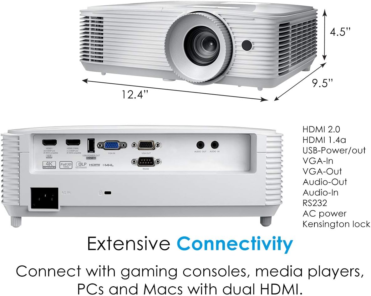 Optoma HD39HDR High Brightness HDR Home Theater Projector | 120Hz Refresh Rate | 4000 lumens | Fast 8.4ms Response time with 120Hz | Easy Setup with 1.3X Zoom | 4K Input | Quiet Operation 26dB